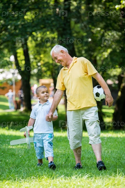 Мальчик с дедом в парке