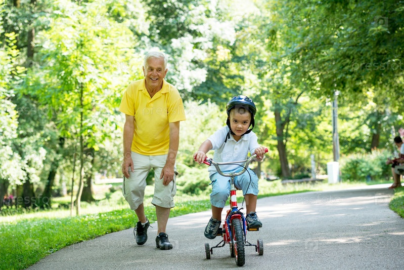 Дедушка с внуком отдыхают в парке