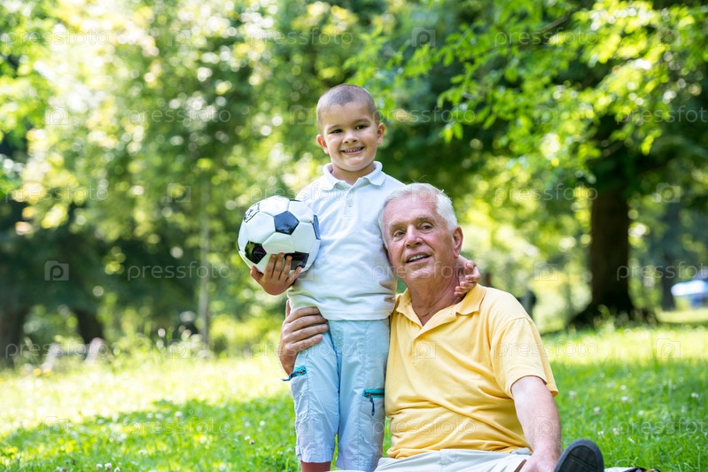 Мальчик с дедом в парке