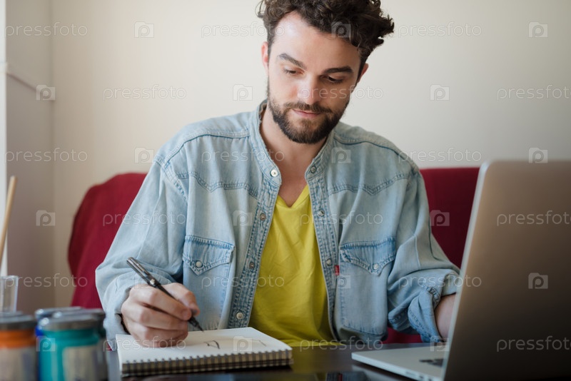 Современный красивый молодой мужчина с ноутбуком