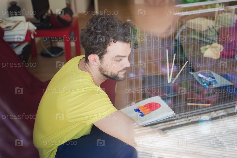Современный красивый молодой мужчина рисует