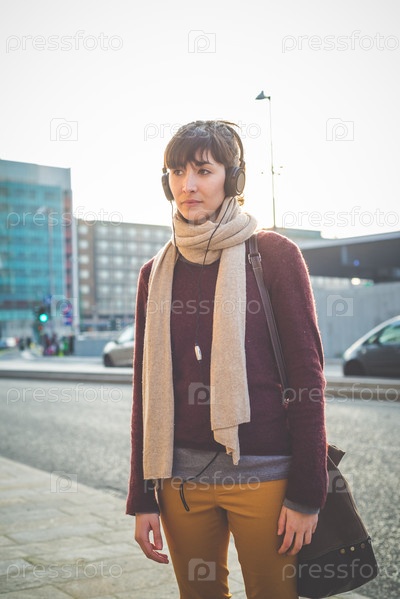Женщина-хипстер в наушниках
