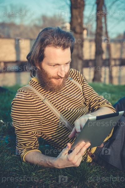 Бородатый молодой мужчина-хипстер
