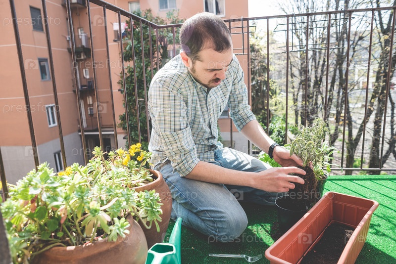 Мужчина садит цветы