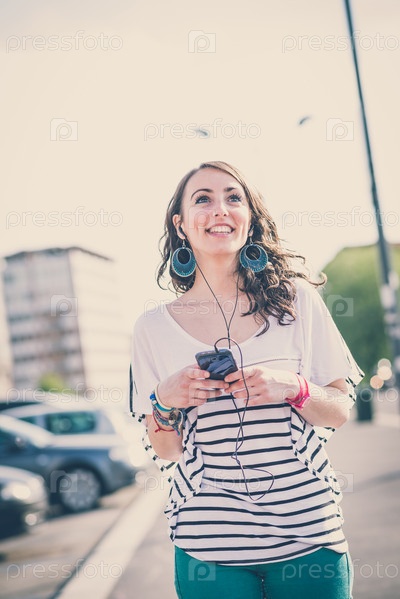 Молодая красивая брюнетка в городе
