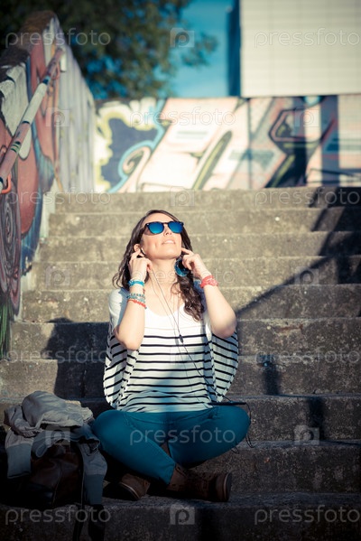 Молодая красивая брюнетка в городе