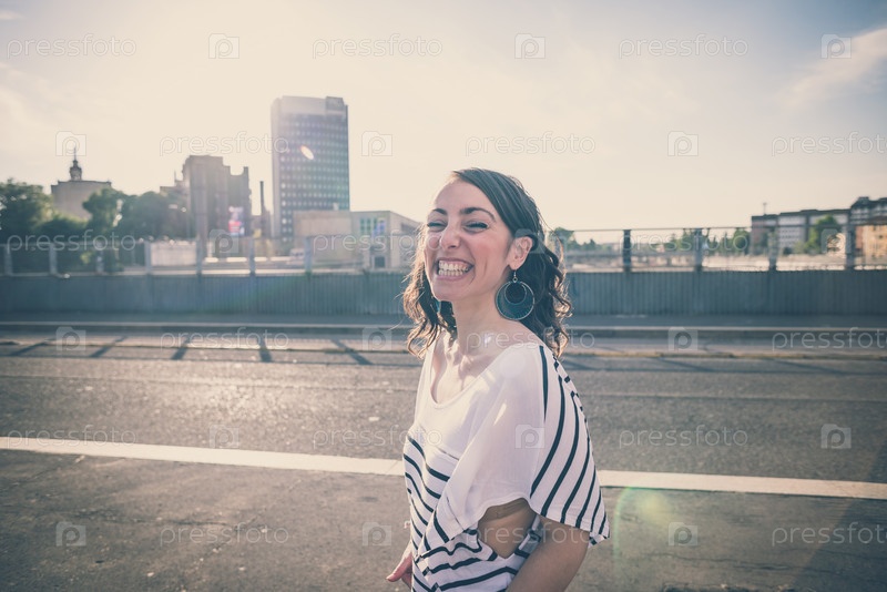 Молодая красивая брюнетка в городе