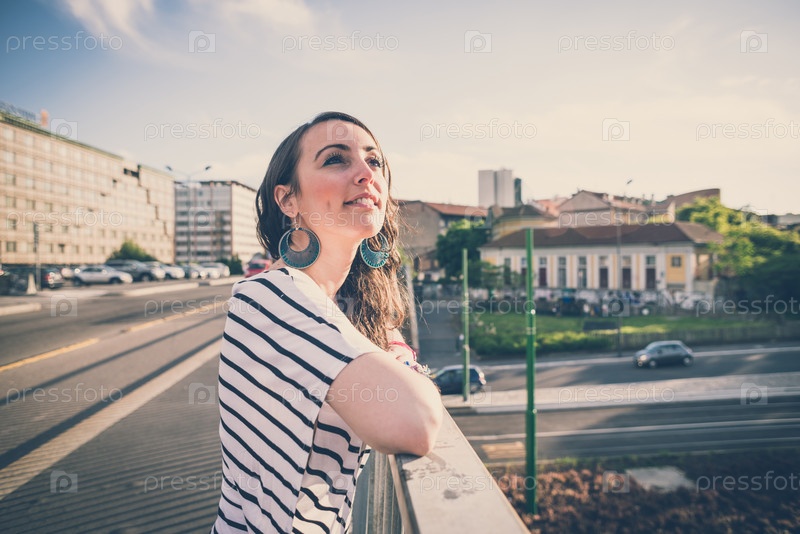 Молодая красивая брюнетка в городе