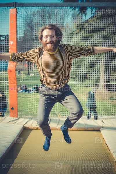 Мужчина прыгает на батуте