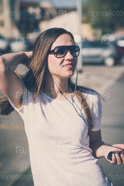 Молодая красивая женщина в городе