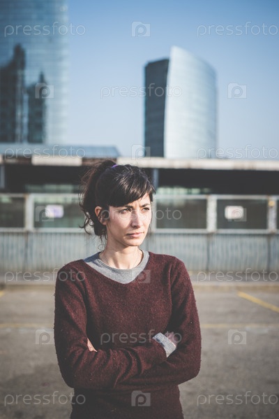 Молодая красивая женщина в городе