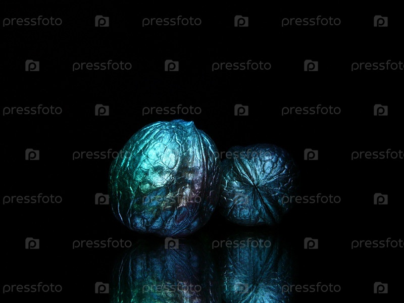 Грецкие орехи, покрашенные серебряной краской