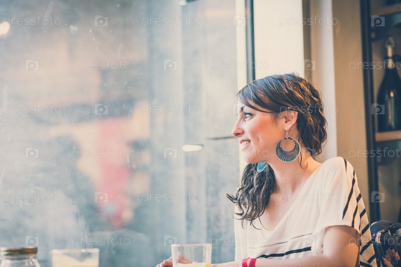 Молодая красивая женщина в кафе