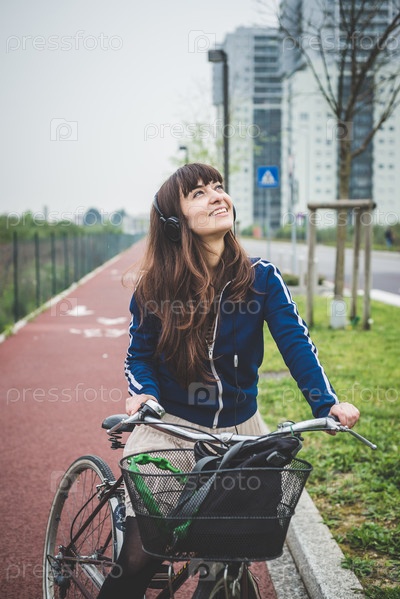 Красивая женщина в наушниках на улице