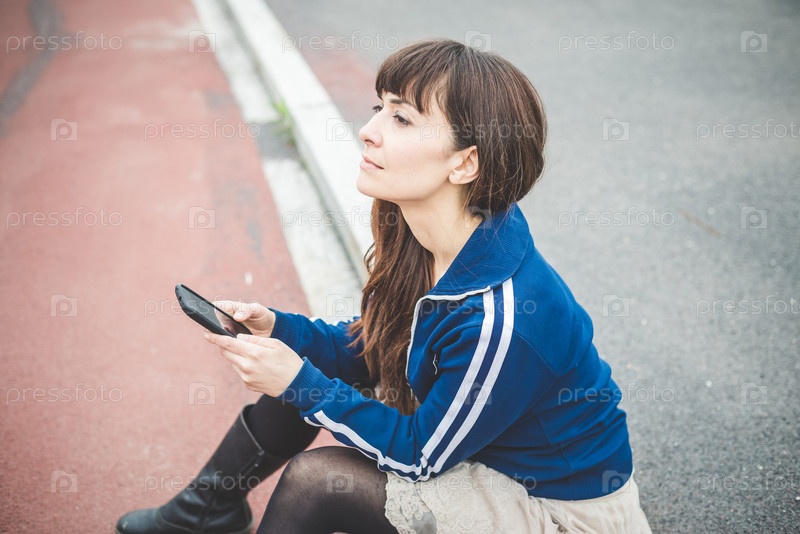 Красивая женщина в наушниках на улице