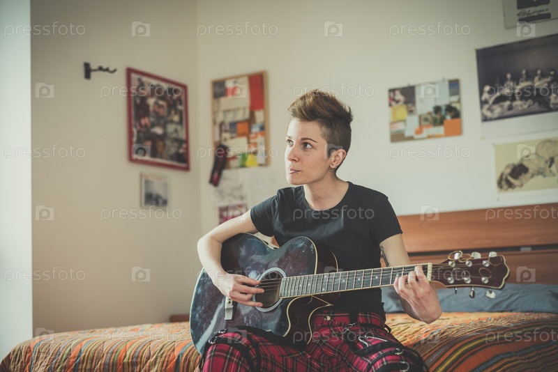 Женщина играет на гитаре