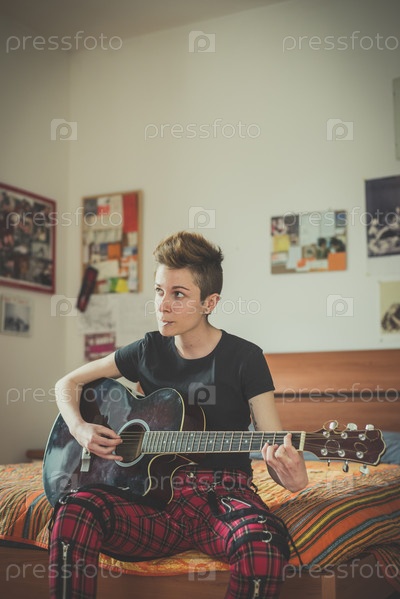 Женщина играет на гитаре
