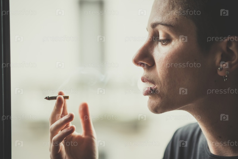 Женщина курит сигарету