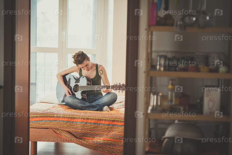 Женщина играет на гитаре