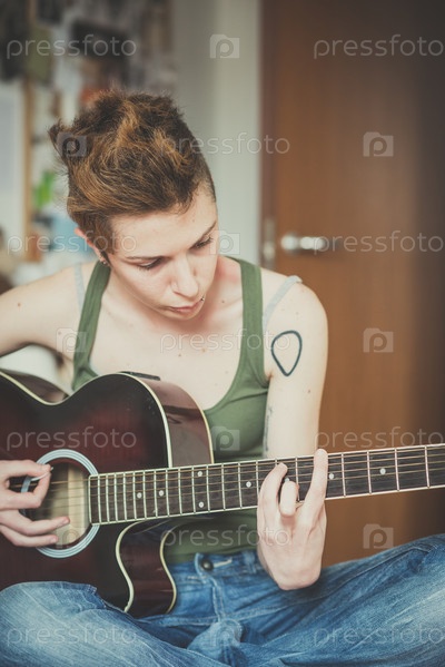 Женщина играет на гитаре
