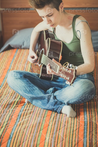 Женщина играет на гитаре