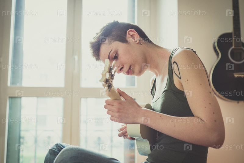 Женщина играет на гитаре