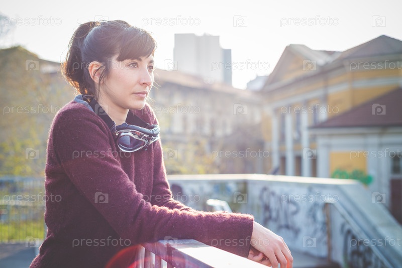 Молодая женщина-хипстер в городе