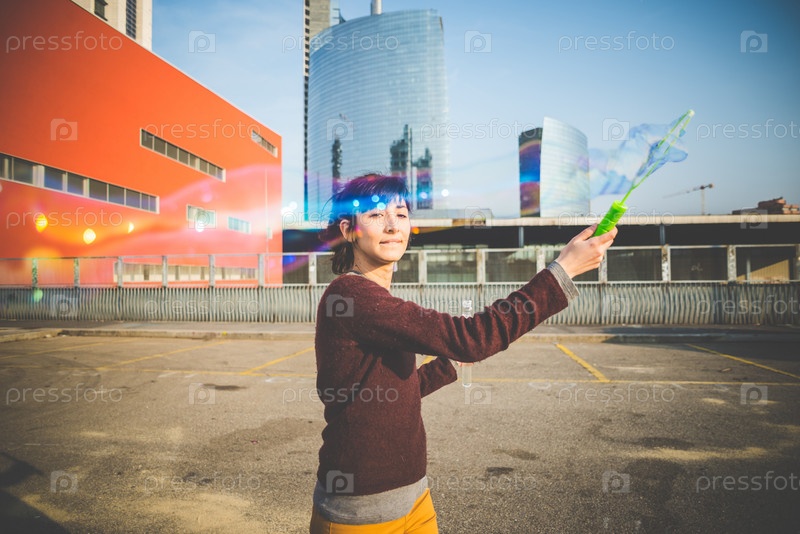 Молодая женщина-хипстер в городе