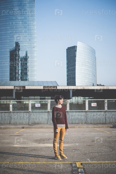 Молодая женщина-хипстер в городе