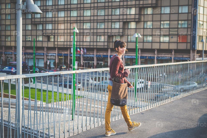 Молодая женщина-хипстер в городе