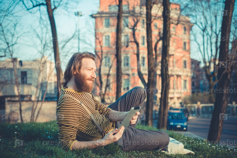 Молодой бородатый мужчина с планшетом