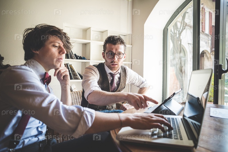 Молодые стильные мужчины-хипстеры