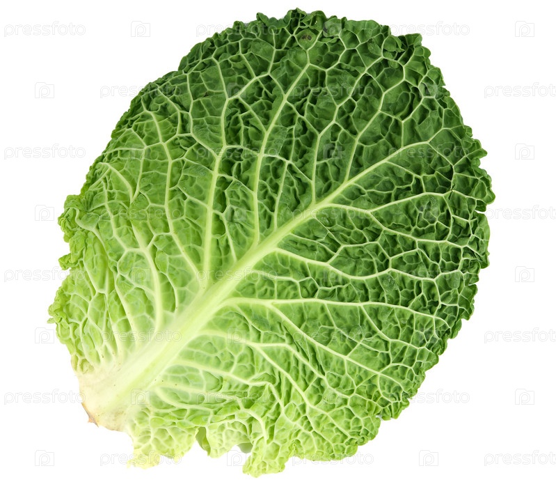 Лист спелой савойской капусты изолированный на белом фоне