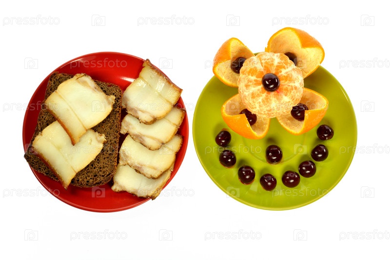 Мандарин и бутерброд с салом