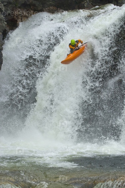 Прыжок с водопада на байдарке