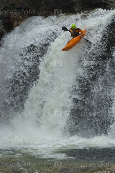 Прыжок с водопада на байдарке
