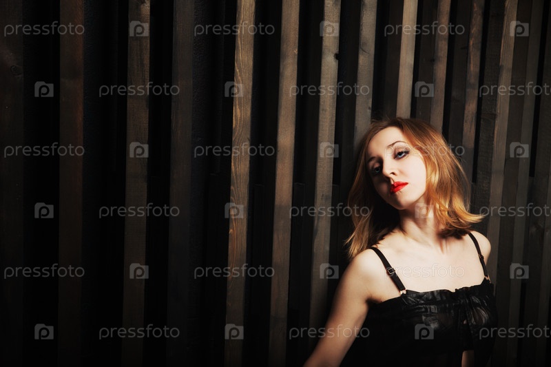 Женщина у деревянной стены