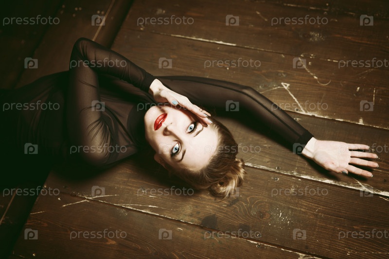 Красивая молодая женщина лежит на лестнице