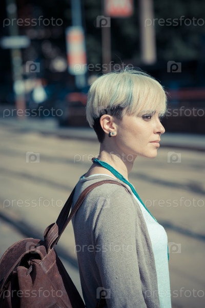 Красивая молодая блондинка с короткими волосами