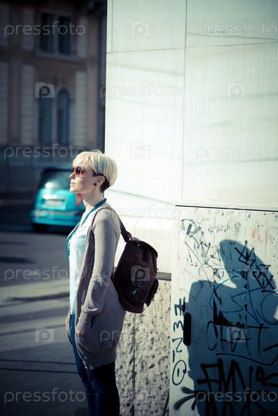 Красивая молодая блондинка с короткими волосами