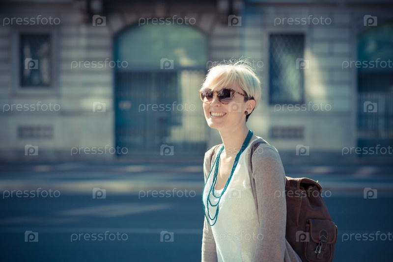Красивая молодая блондинка с короткими волосами