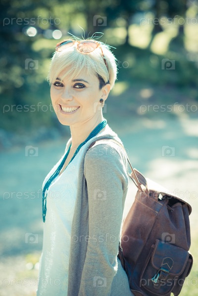 Красивая молодая блондинка с короткими волосами