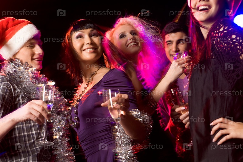 Изображение радостных друзей, веселящихся в дискотеке в ночном клубе на вечеринке
