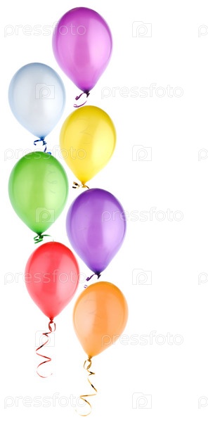 Студийный снимок красочных воздушных шаров, изолированных на белом фоне