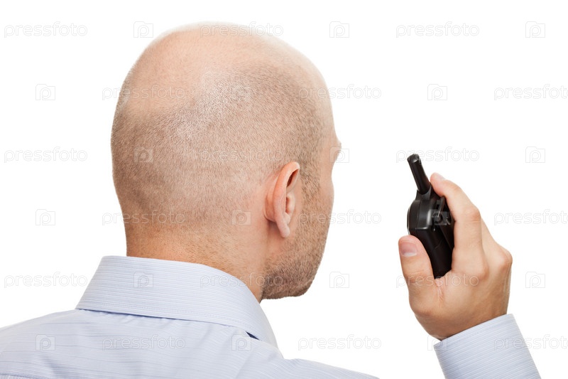 Охранник с рацией, вид сзади