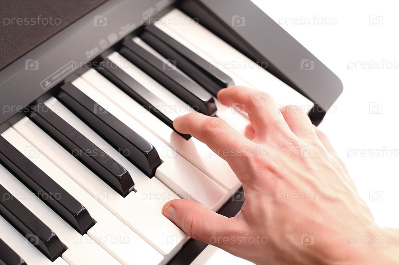 Мужчина играет на синтезаторе, крупным планом