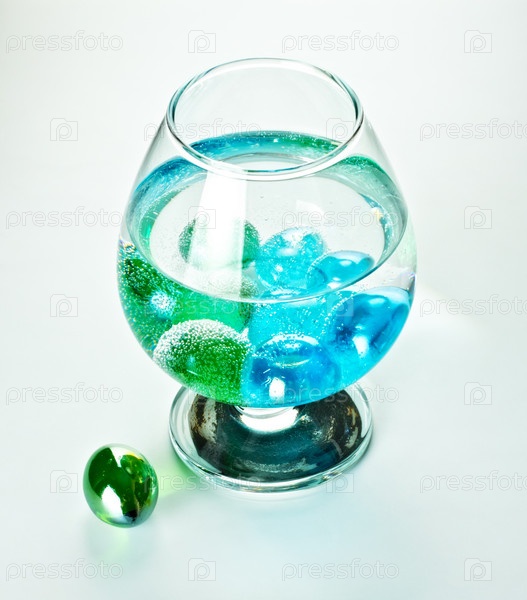 Минеральная вода в бокале с декоративными камнями