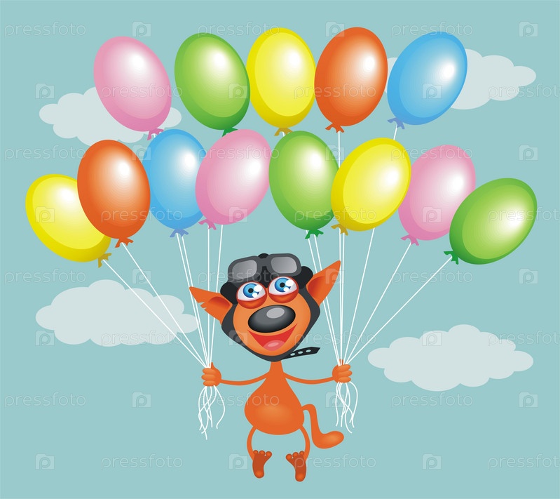 Маленький зверек летит на воздушных шариках