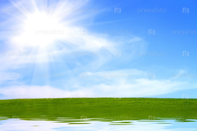 Зеленое поле и голубое небо