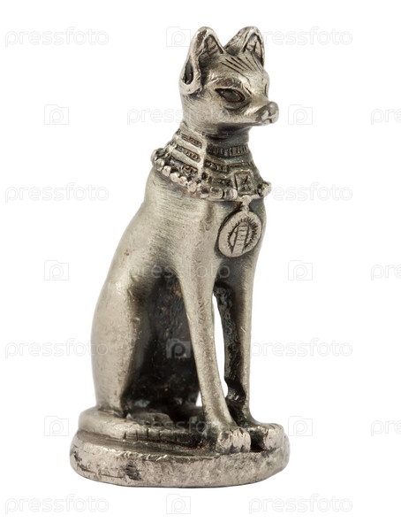 Металлическая фигурка - египетская кошка на белом фоне